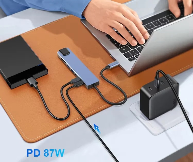កម្លាំងសាកថ្ម 100W Power Delivery៖ ឈប់បារម្ភរឿងអស់ថ្ម! ជាមួយនឹងការគាំទ្រពិធីការ PD 3.0 អ្នកអាចសាកថ្ម Laptop របស់អ្នកក្នុងល្បឿនរហូតដល់ 100W ក្នុងពេលដំណាលគ្នាជាមួយការប្រើប្រាស់រន្ធផ្សេងទៀត។