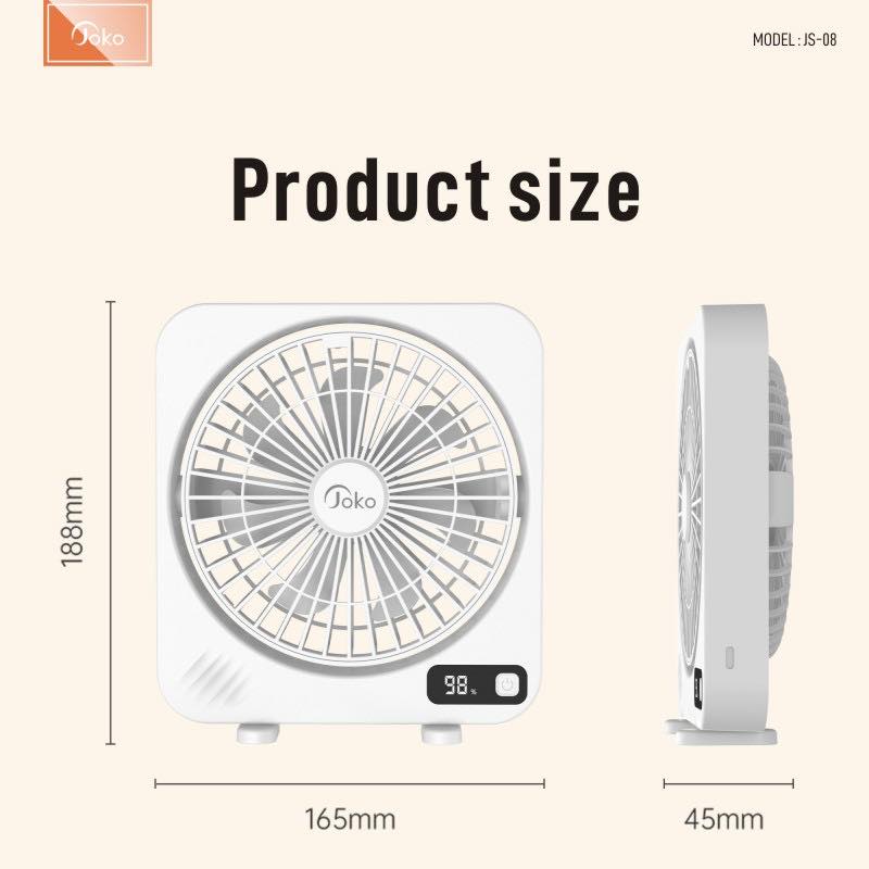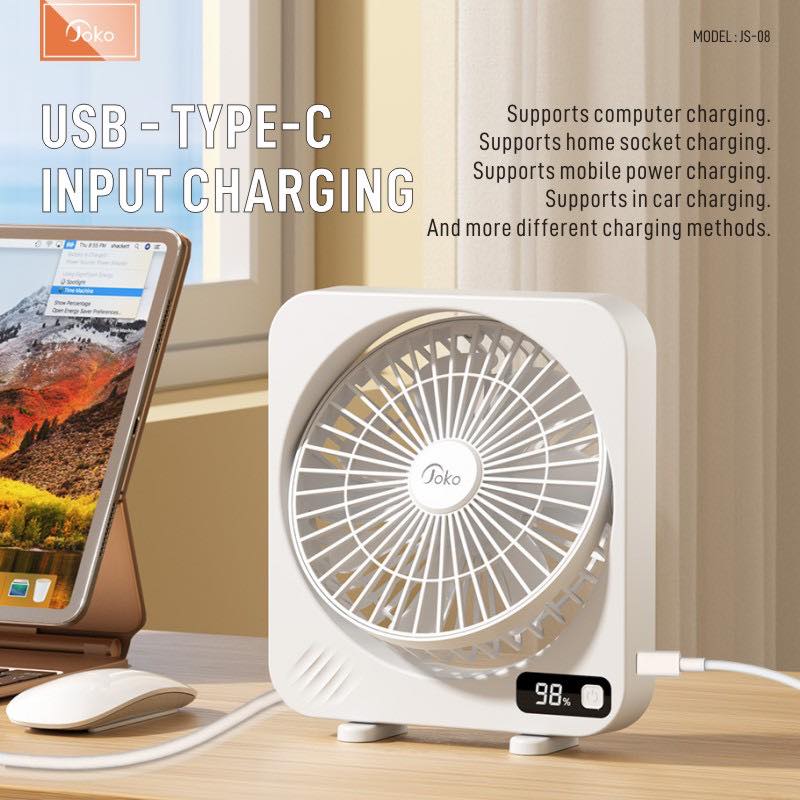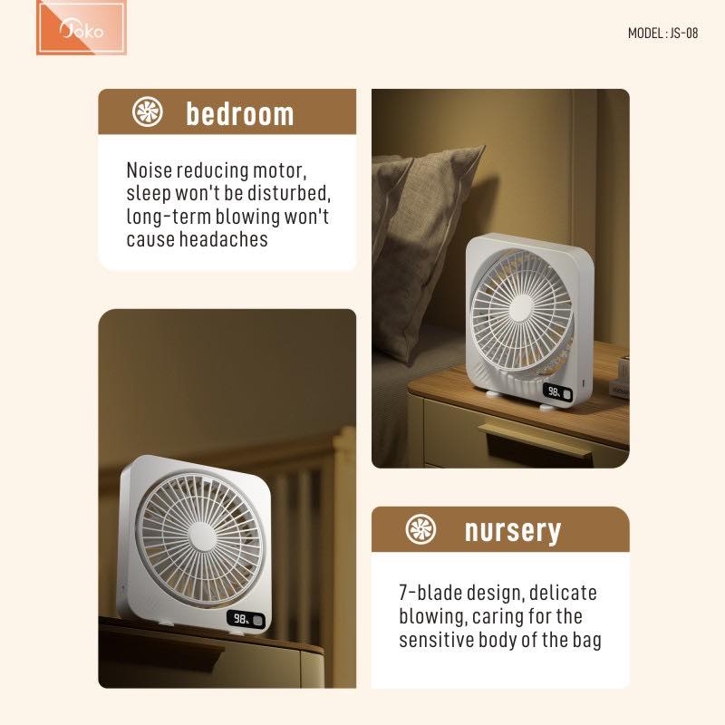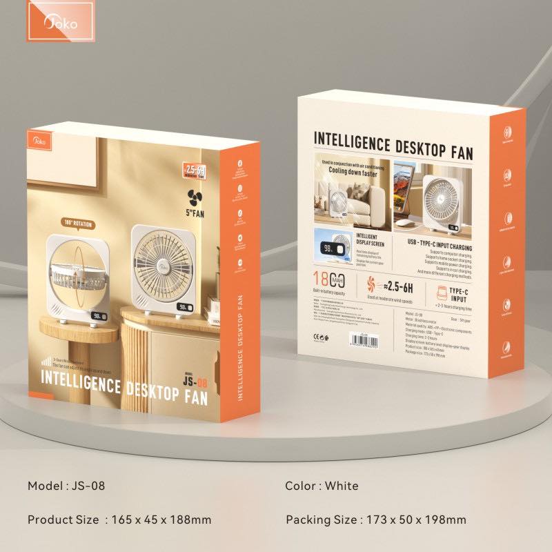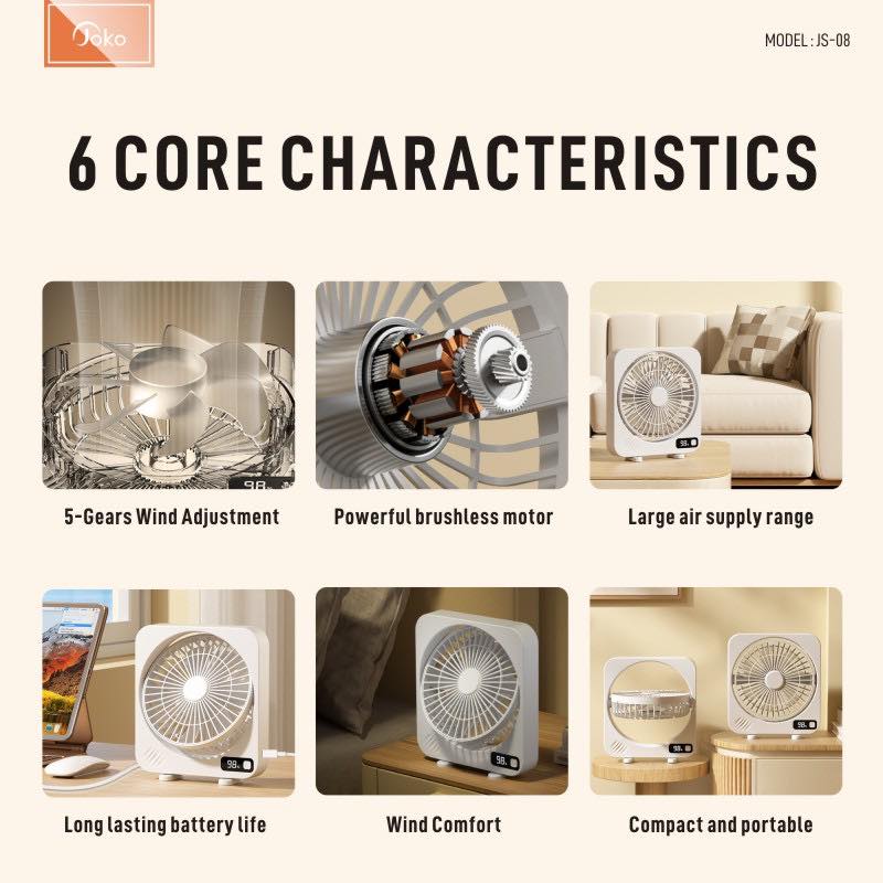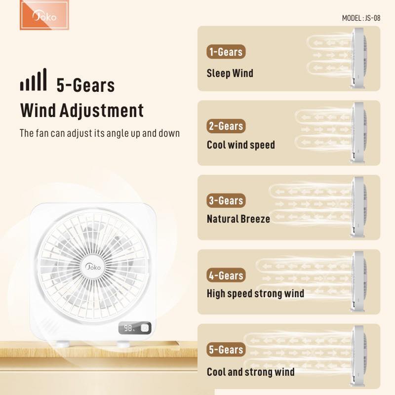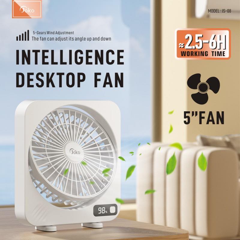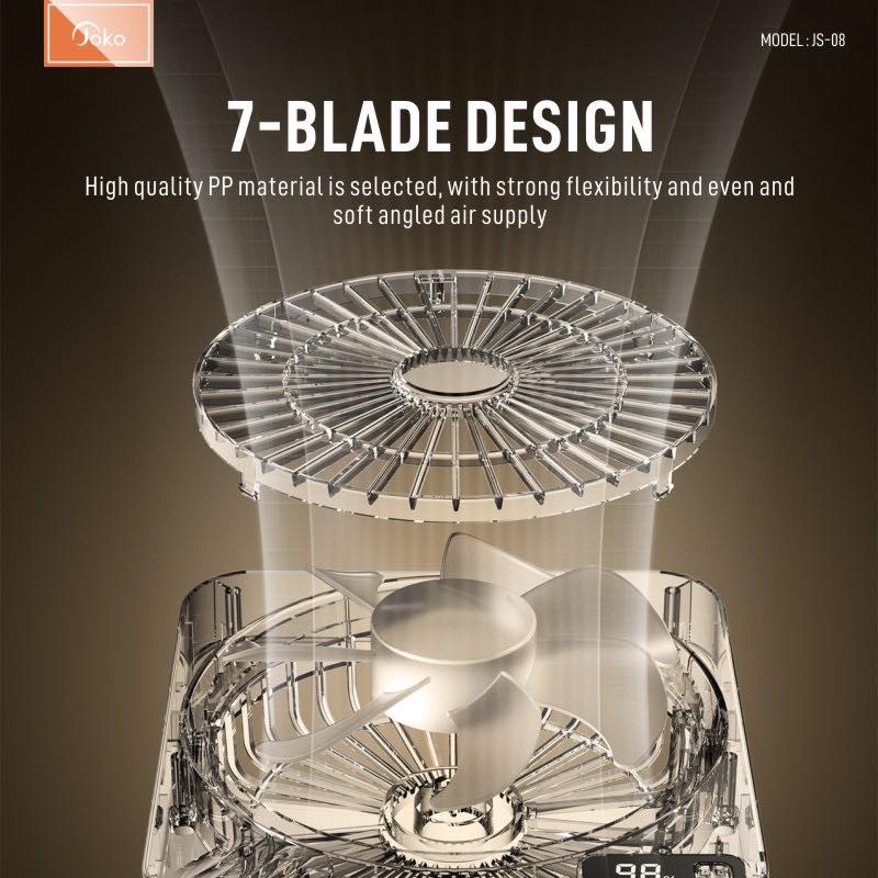 JOKO JS08 5-Speed Smart Portable Fan – 1800mAh Rechargeable Desktop & Neck Fan with LED Display
