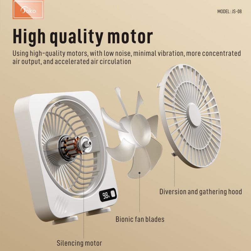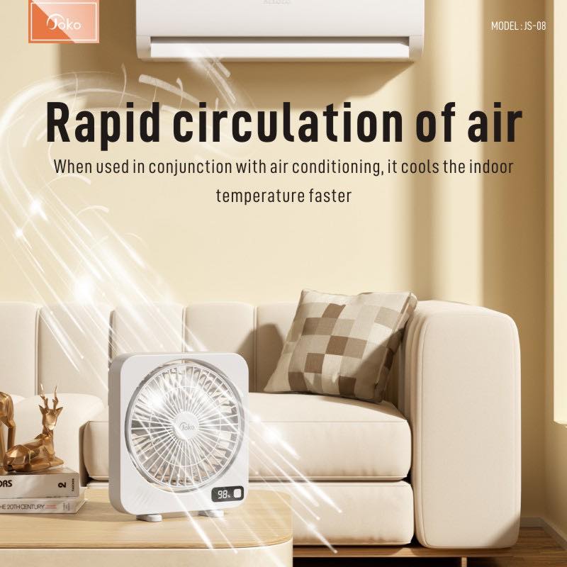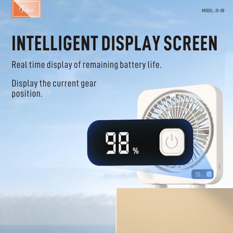 ត្រជាក់គ្រប់ទីកន្លែងជាមួយ JOKO JS08 Smart Fan។ កង្ហារដែលមានរូបរាងស្តើង ស្រាល និងទាន់សម័យនេះ គឺជាជំនួយការដ៏ល្អបំផុតសម្រាប់រដូវក្ដៅ។ វាមាន កម្លាំងខ្យល់ដល់ទៅ ៥ កម្រិត និងមាន ថ្ម 1800mAh ដែលអាចឱ្យអ្នកប្រើប្រាស់បានពី ២.៥ ទៅ ៦ ម៉ោង។ អ្វីដែលពិសេសបំផុត គឺវាមាន អេក្រង់ LED ឌីជីថល ប្រាប់ពីភាគរយថ្ម និងលេខកម្រិតខ្យល់។ អ្នកអាចកាន់នឹងដៃ ដាក់លើតុ ឬពាក់នៅជាប់នឹងកជាមួយខ្សែយួរ ដែលធ្វើឱ្យវាក្លាយជាឧបករណ៍ត្រជាក់ដ៏បត់បែនបំផុត។