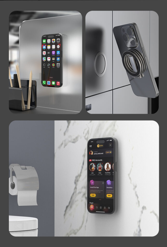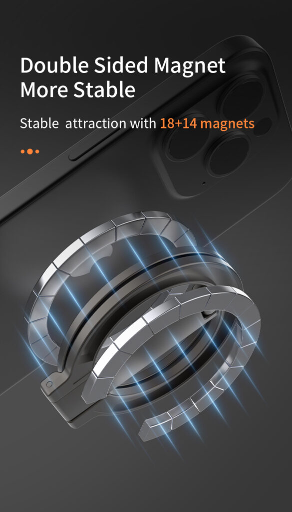 • កម្លាំងម៉ាញ៉េទិចសងខាង៖ ម្ខាងចាប់ទូរស័ព្ទរបស់អ្នកឱ្យជាប់ ហើយម្ខាងទៀតបិទជាប់នឹងឧបករណ៍ហាត់ប្រាណ ទ្វារទូទឹកកក ឬដែកក្នុងឡាន។