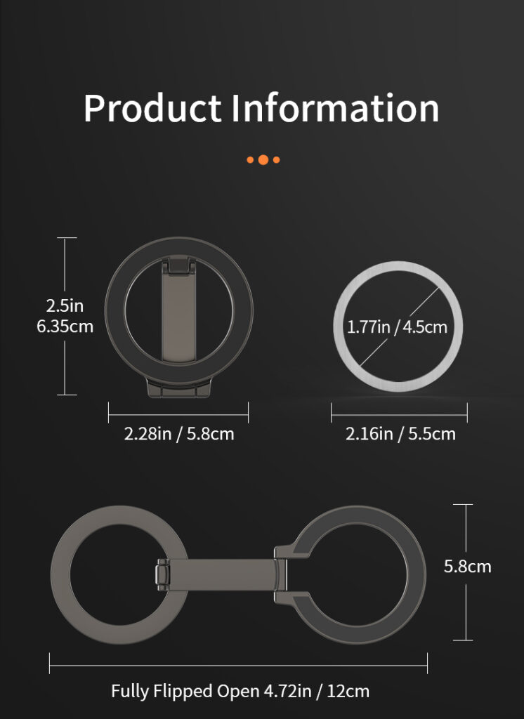Foldable Double-Sided Magnetic Phone Ring Holder & Kickstand