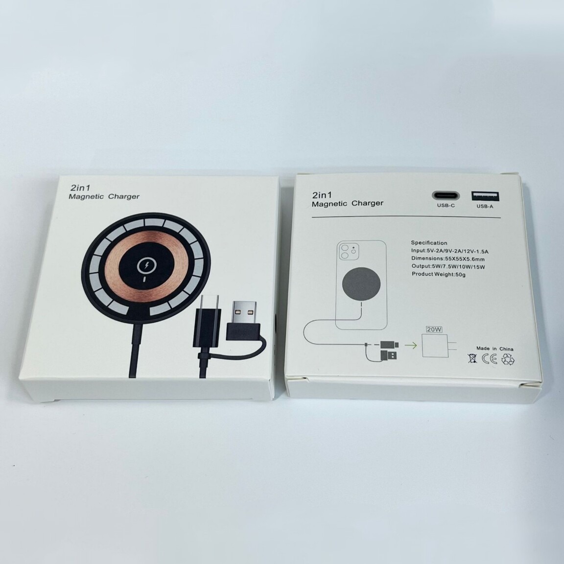 The Transparent 2-in-1 Magnetic Wireless Charger is a 15W fast-charging desktop accessory that supports MagSafe compatibility for iPhone and other Qi-enabled devices. With a sleek clear design, it combines efficient dual charging with modern aesthetics, making it both practical and stylish.